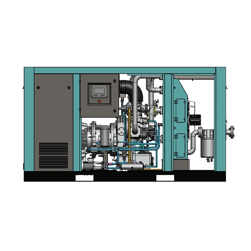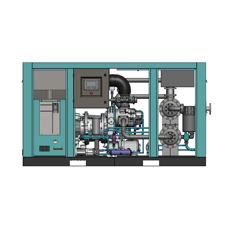 Le rapport de démultiplication de la tête du compresseur basse pression est de 3 dents pour le rotor menant et de 4 dents pour le rotor mené ; la tête du compresseur à étage haute pression utilise 4 dents pour le rotor d'entraînement et 6 dents pour le rotor entraîné. Les rotors subissent tous un traitement de surface spécial. En particulier, l'étage haute pression utilise des rotors en acier inoxydable, qui sont durables - capables de résister à des températures et des pressions élevées - et possèdent une structure unique, ce qui le rend facile à adapter à différentes spécifications, avec un fonctionnement et un entretien simples ; la conception unique du joint d’arbre garantit un air comprimé absolument exempt d’huile.